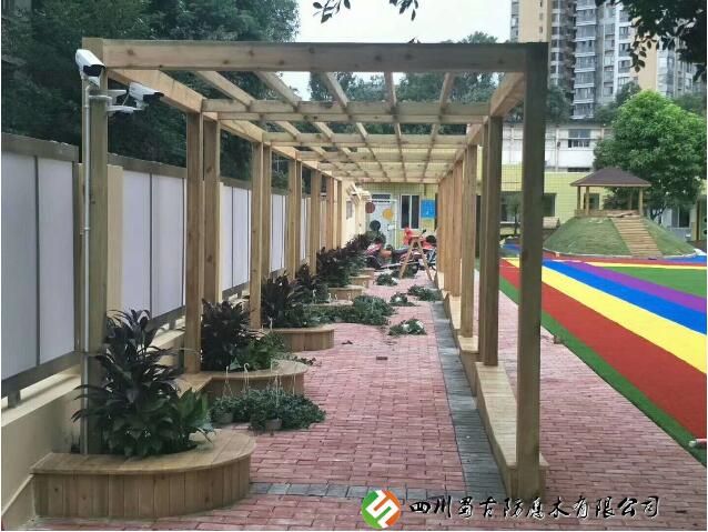 園林廊架是供遊人休息、景觀點綴之用的建築體,廊架可以和亭、廊、水榭等結合,組成外形美(měi)觀(guān)的園林建築群;在居住區綠(lǜ)地、兒童遊戲場中廊架可供休(xiū)息、遮蔭、納涼;用廊架代替廊子,可以聯(lián)係空間;用格子垣攀(pān)緣藤本植物,可分隔景物(wù);園(yuán)林中的茶室、冷(lěng)飲部、餐廳等,也(yě)可以用廊架作涼(liáng)棚,設置坐席;也(yě)可用廊架作園林的大門(mén)。